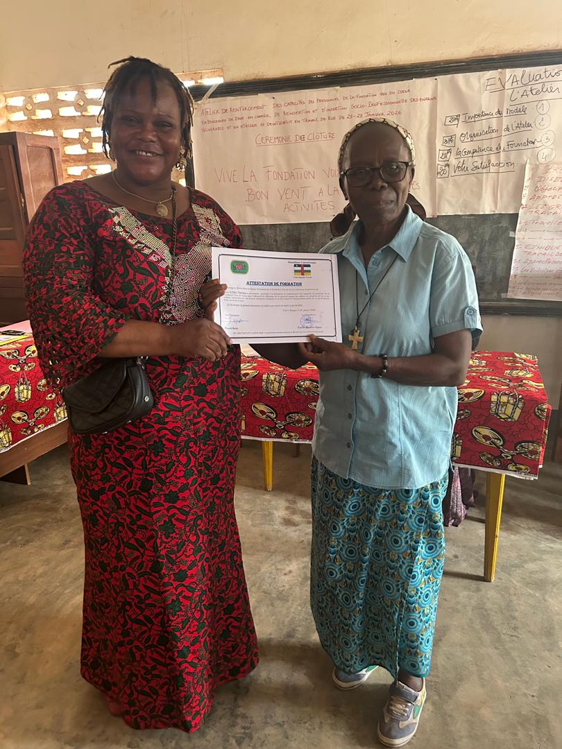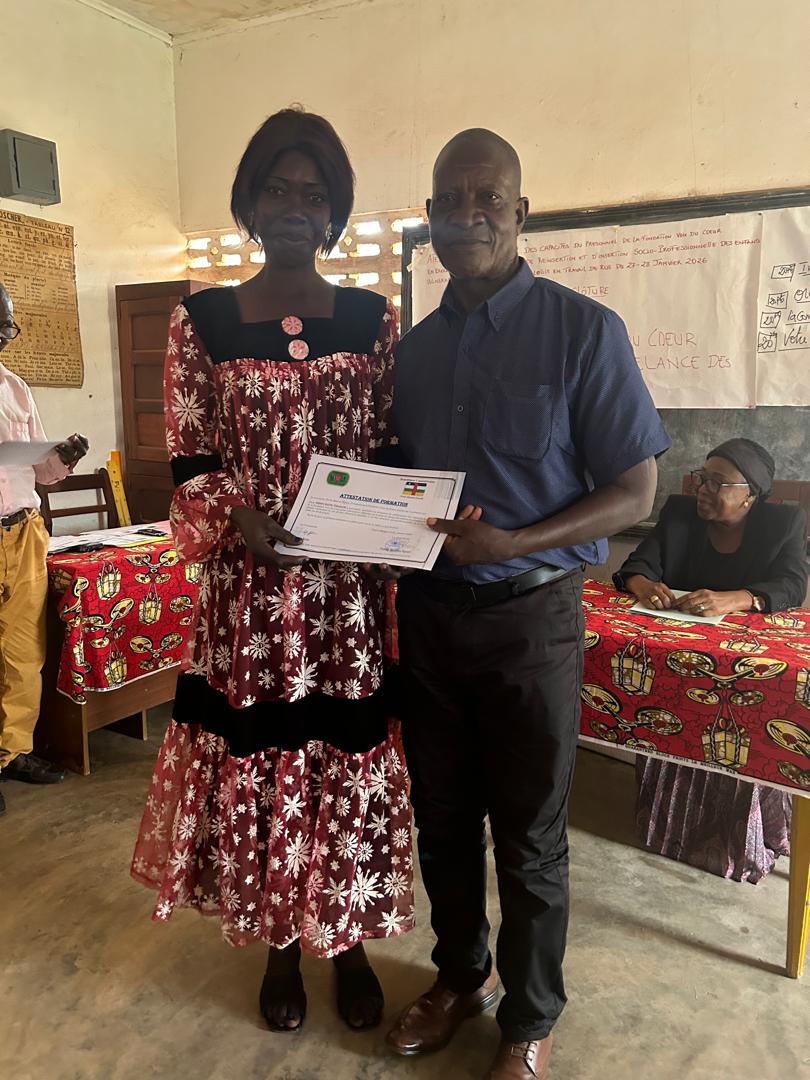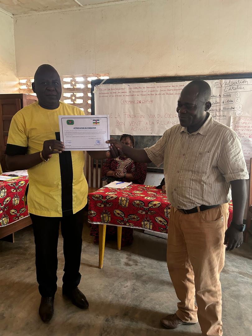 La Fondation Voix du Coeur depuis sa création en 1994 il y a 32 ans a beaucoup œuvré dans la formation des acteurs sociaux pour l’acquisition des ressources et outils nécessaires à la protection d’une manière générale et à l’encadrement, à la réinsertion familiale, à l’insertion socioprofessionnelle des enfants vulnérables et enfants en situation de rue en République Centrafricaine.
