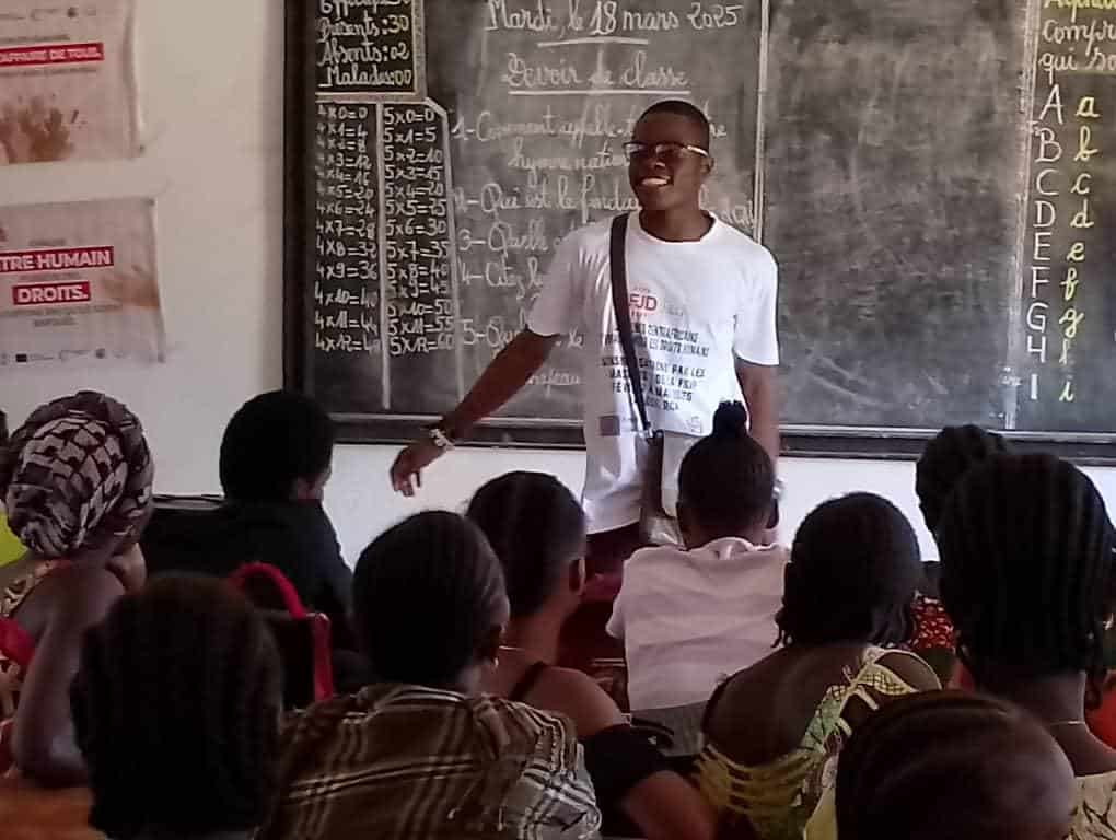 Les jeunes centrafricains s’engagent pour les droits humains stresor2025-06-30T14:25:39+02:00 Sensibilisation février – mai 2025, par les étudiants de M1 de la Faculté des sciences juridique et politique de l’Université de Bangui. Partager cette publication Facebook Gazouillement LinkedIn Google + Email WhatsApp